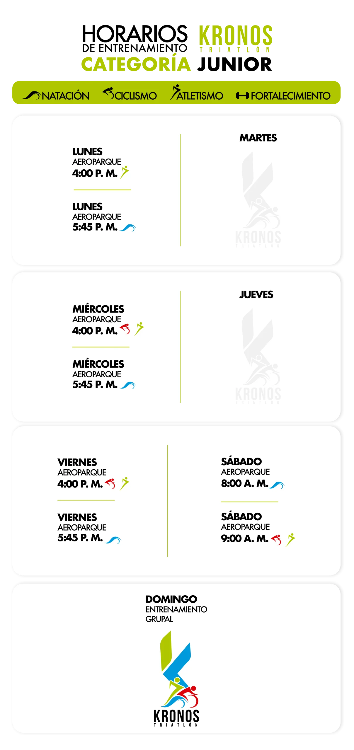 CRONOGRAMA SEMANAL INICIA A LOGRAR TU META AHORA… Hablemos y separa tu clase de Cortesía en este instante… Nombre WhatsApp Mensaje 10 + 3 = Enviar KRONOS, MÁS QUE UN CLUB DEPORTIVO